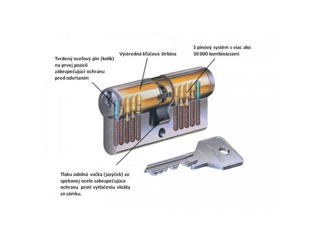 - ochrana proti odvŕtaniu tvrdené kolíky na prvej pozícii